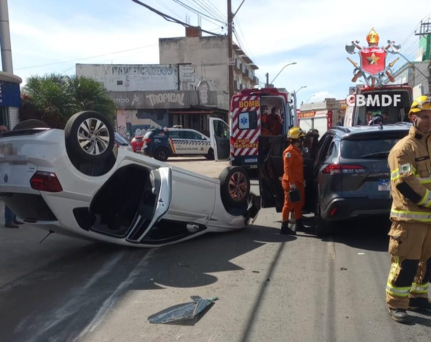 Um acidente de trânsito, na tarde desta segunda-feira (17), deixou três pessoas feridas. Dois carros de passeio colidiram na Avenida Samdu em Taguatinga. Um dos carros envolvidos capotou durante a ocorrência.