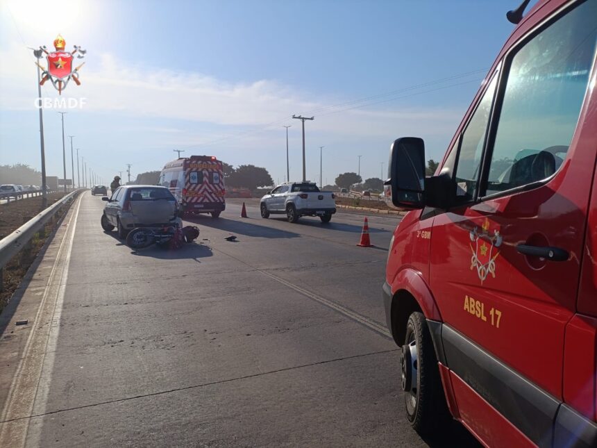 Nesta quarta-feira (1), um motociclista se feriu ao se envolver em um acidente de trânsito na via Estrutural. A vítima, que não teve sua identidade divulgada, colidiu com um carro. A situação aconteceu às 7h02 da manhã.