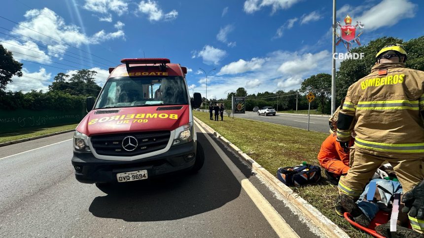 Nas imagens divulgadas pelo Corpo de Bombeiros Militar do Distrito Federal (CBMDF), é possível acompanhar o atendimento da vítima. Uma das faixas foi interditada.