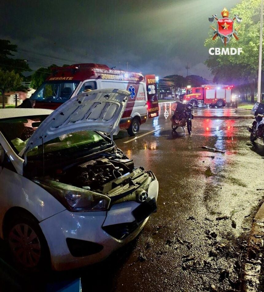 Segundo a corporação, a vítima passou pelo protocolo de trauma e foi encaminhada a um hospital. Ela permaneceu orientada e consciente durante todo o atendimento. Em imagens divulgadas da ocorrência, nota-se que a frente do veículo ficou parcialmente destruída.