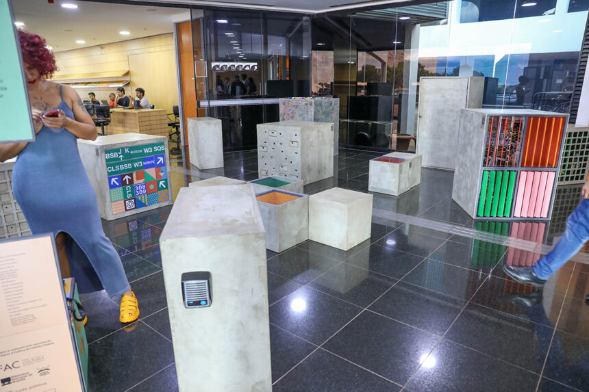 “A gente vai ativando várias brincadeiras que estão nesse contexto urbano e traz para essa espécie de maquete gigante que é a obra, composta por 20 blocos que, por fora, têm essa aparência cimentícia, se assemelham a um concreto armado, mas, se a gente chegar mais perto, vai ver que têm cor, têm elementos da natureza, têm sons, assim como na cidade. As cidades precisam dessa curiosidade da criança. E assim é Brasília. Algumas pessoas têm essa impressão de que é uma cidade fria, branca, de concreto, mas tem muita poesia, tem muita brincadeira, só precisa que a gente tenha esse olhar curioso”, ressaltou Luênia Guedes, integrante do coletivo Entrevazios e uma das idealizadoras da obra.