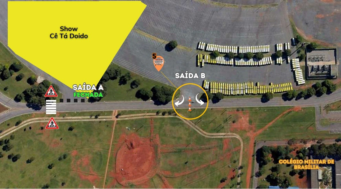 O Detran-DF implantará sinalização para canalizar o fluxo de veículos em sentido único. Para isso, a rotatória da Curva do Chinelo, próxima ao Complexo Aquático Cláudio Coutinho, e a rotatória na altura do Autódromo Nelson Piquet ficarão bloqueadas.