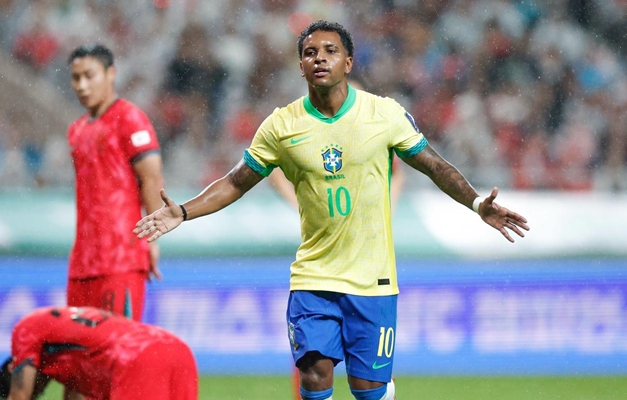 A seleção brasileira goleou a Coreia do Sul por 5 a 0 em partida amistosa, e mostrou que começa a evoluir sob o comando do técnico italiano Carlo Ancelotti quando falta pouco menos de um ano para o início da próxima Copa do Mundo. A principal virtude do Brasil, na partida disputada nesta sexta-feira (10) no Estádio da Copa do Mundo de Seul, em Seul, foi o bom entendimento do quarteto ofensivo formado por Estêvão, Matheus Cunha, Vinicius Júnior e Rodrygo.