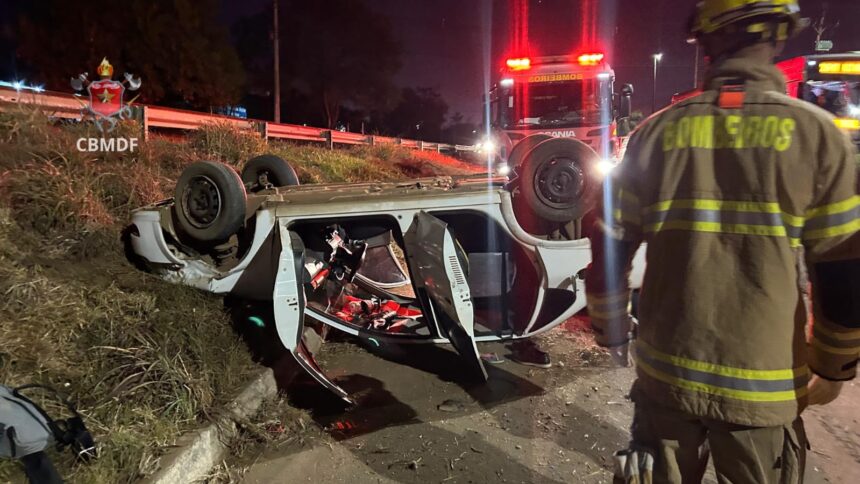 Nas imagens divulgadas pelo Corpo de Bombeiros Militar do Distrito Federal (CBMDF), é possível ter uma dimensão da ocorrência. O veículo ficou com as rodas para cima. Confira a seguir: