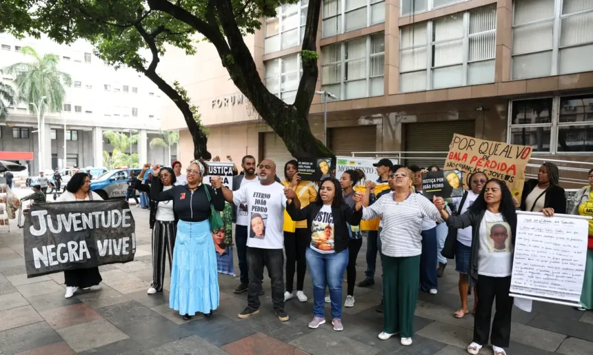 De manhã, a família de João Pedro e defensores dos direitos humanos fizeram uma manifestação em frente à sede do TJRJ, no centro do Rio, cobrando que a corte aceite o recurso.