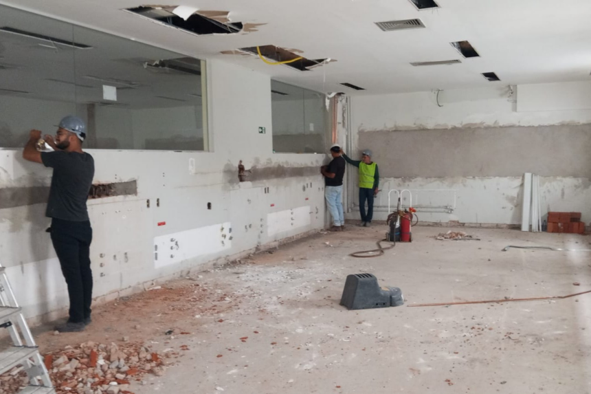 Já no CO, foram iniciadas as demolições das áreas comprometidas e a remoção do piso que será substituído por outro mais estável. Todo o processo está sendo acompanhado por equipe técnica especializada, assegurando a integridade da estrutura durante as intervenções.
