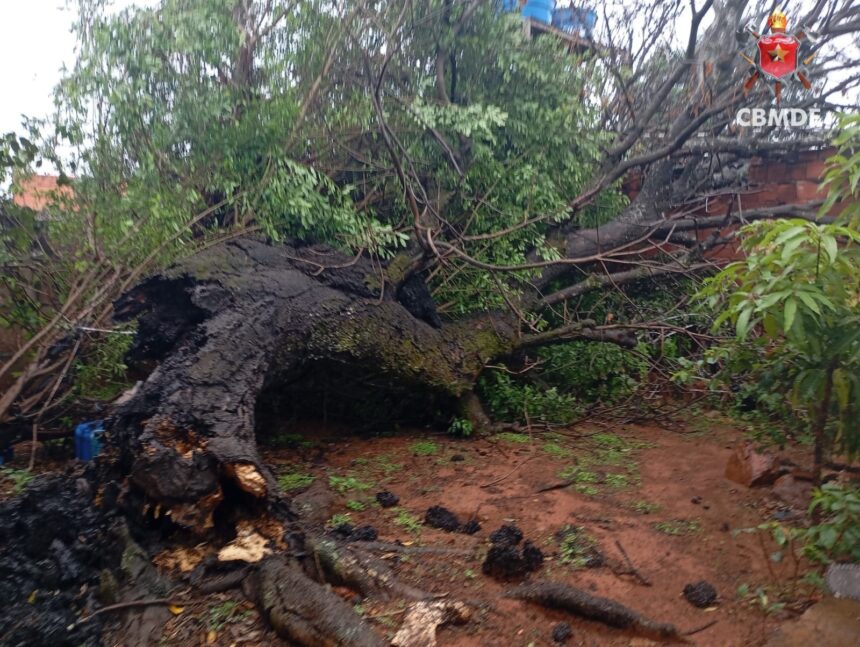 Com as fortes chuvas ao longo da manhã desta segunda-feira (3), uma árvore caiu nos fundos de uma casa na região de Taguatinga. Os danos ocorreram, principalmente, no muro que divide a residência e no telhado.