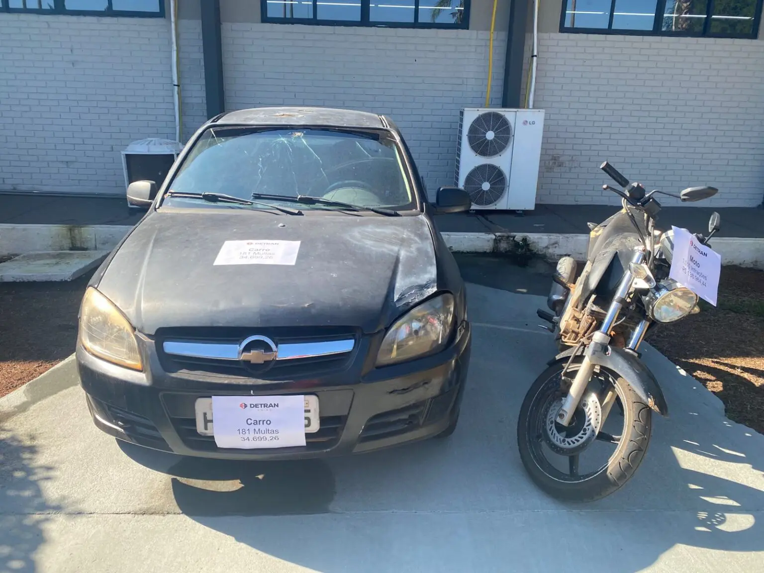 Só uma motocicleta apreendida em Pires do Rio, no interior do Estado, totaliza 1.010 infrações de trânsito cometidas de 2019 a 2024 nas rodovias da região. O valor devido em multas é de R$ 138,9 mil. Já o automóvel possui 181 infrações de trânsito, somando R$ 34,6 mil em multas, e foi recolhido em Itumbiara.