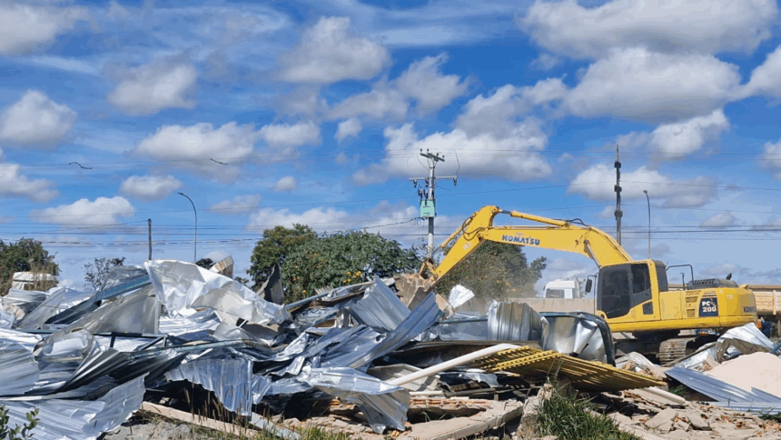 Agora, a secretaria passou por nove pontos distintos naquele espaço e demoliu quatro edificações em alvenaria, dois galpões, uma estrutura em madeira e outra estrutura metálica. Quase um quilômetro de muro também foi removido.