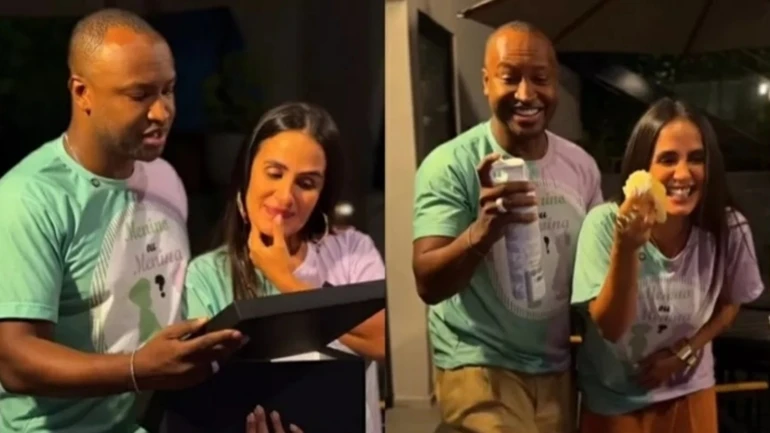 “Ontem tivemos a alegria de descobrir quem é nosso bebê com nossas famílias e amigos. E, claro, viemos compartilhar esse amor e nossa emoção com vocês! Obrigado por tanto carinho! Beijo grande, nós três!”, diz um trecho da legenda do vídeo publicado pelo casal.