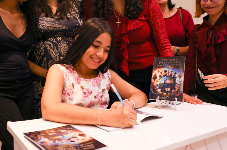 Os próprios estudantes-autores abrilhantaram o evento com apresentações de balé, flauta e um sarau de poemas autorais. Manuela de Andrade Montenegro, 12 anos, estudante do Cemab e uma das autoras do livro, descreveu a escrita como uma ferramenta de autogestão emocional. “O livro libera raiva, medo, não necessariamente sentimentos ruins, mas ele me deixa muito aliviada. Eu amo escrever poemas, é uma forma que tenho de liberar meus sentimentos. Desde pequena, minha paixão é escrever”, destacou.
