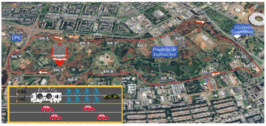 Das 7h às 13h, haverá o passeio ciclístico Bora de Bike, com largada prevista para as 9h, no estacionamento nº 7 do Parque da Cidade. Cerca de três mil pessoas ciclistas devem participar do passeio e, para que haja segurança dos participantes, o Detran-DF empregará uma viatura de quatro rodas e duas motocicletas para realizar o acompanhamento do passeio ciclístico, cujo trajeto será dentro do parque no sentido anti-horário, saindo e chegando no estacionamento nº 7. Durante o evento, a circulação de veículos será somente no sentido horário.