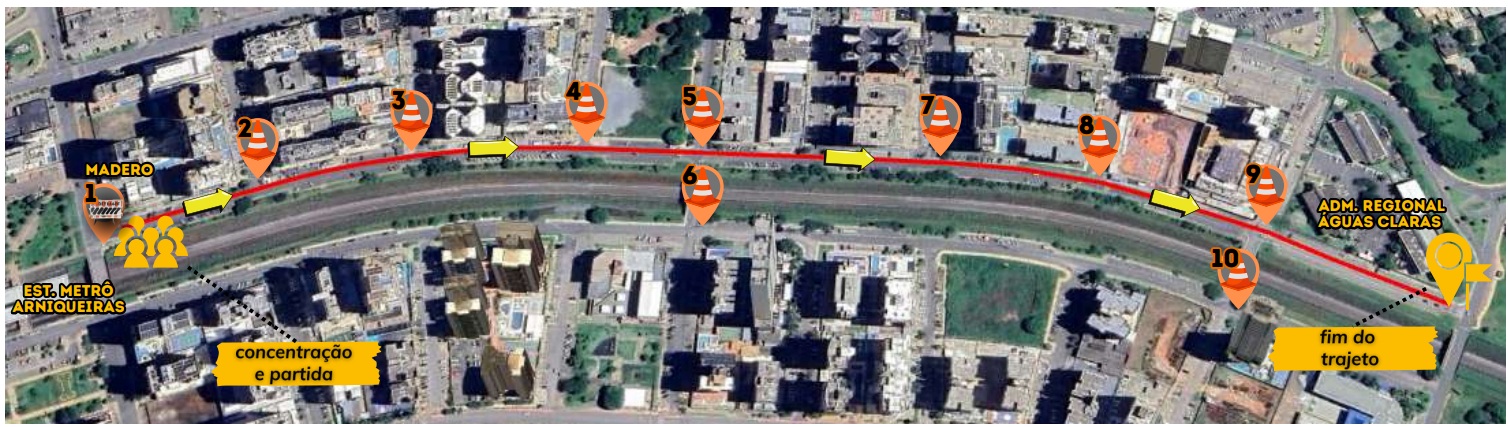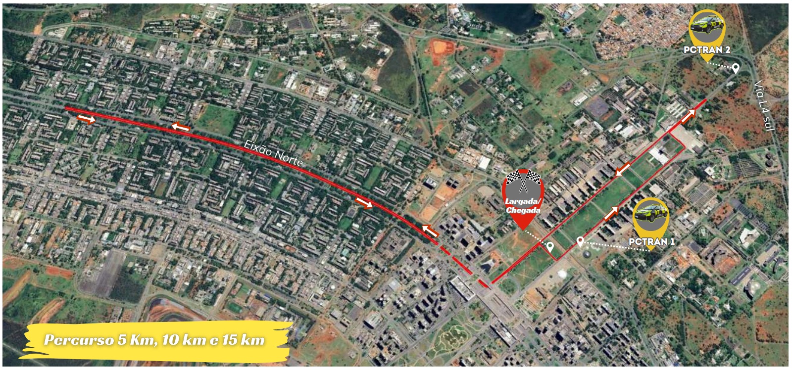 Entre as 6h30 e as 10h, haverá alteração no trânsito da Esplanada dos Ministérios para a Corrida Netshoes. Cerca de 1,5 mil pessoas se concentrarão para largada e chegada na altura do Museu da República. O trajeto compreende as vias S1, N1 e Eixo Rodoviário Norte. Os acessos da via L4 Norte e do Palácio Presidencial para a via N1 ficarão fechados a partir das 6h30. Apenas a faixa mais à direita da via N1 será liberada para os veículos de emergência do 1º Grupamento de Bombeiro Militar. A entrada e a saída do estacionamento da Catedral serão realizadas pelo túnel da Cúria, na via S2. A faixa mais à direita da via S1 ficará liberada para a saída de veículos que vierem dos Ministérios.