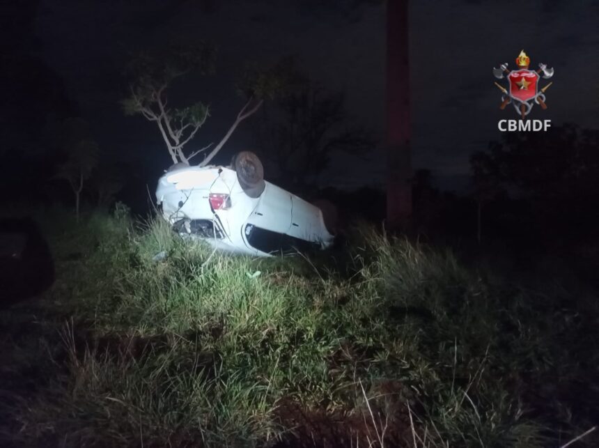 Na madrugada desta quarta-feira (16), o carro de uma família capotou na região do Paranoá. As vítimas estavam na DF-150, próximo a um bar conhecido como “Chica”. O caso ocorreu às 3h20.