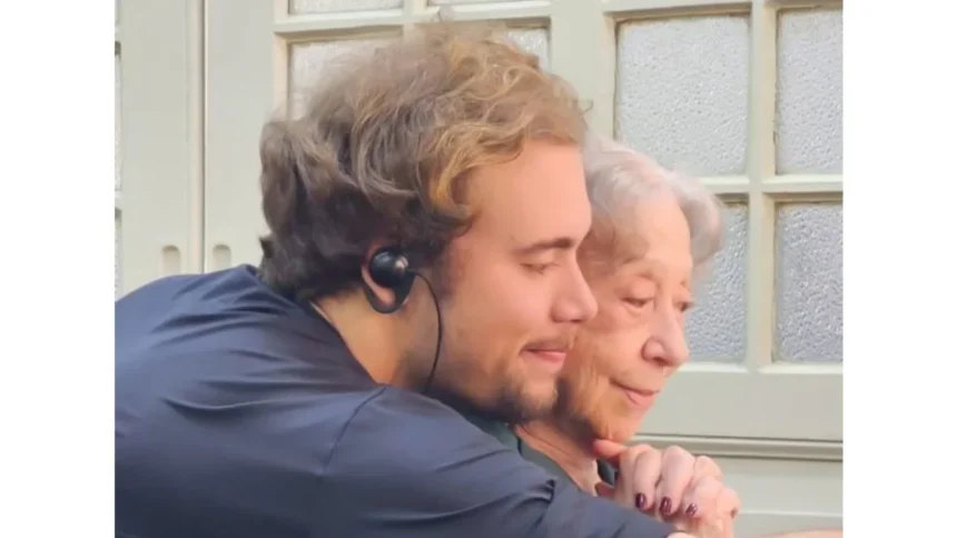 Fernanda Montenegro posta foto com o neto em set de filmagem de série do Globoplay