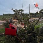 Carro capota e bate em árvore durante a madrugada desta segunda-feira
