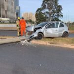 Acidente de trânsito: motorista bate carro em poste e é socorrida na Capital