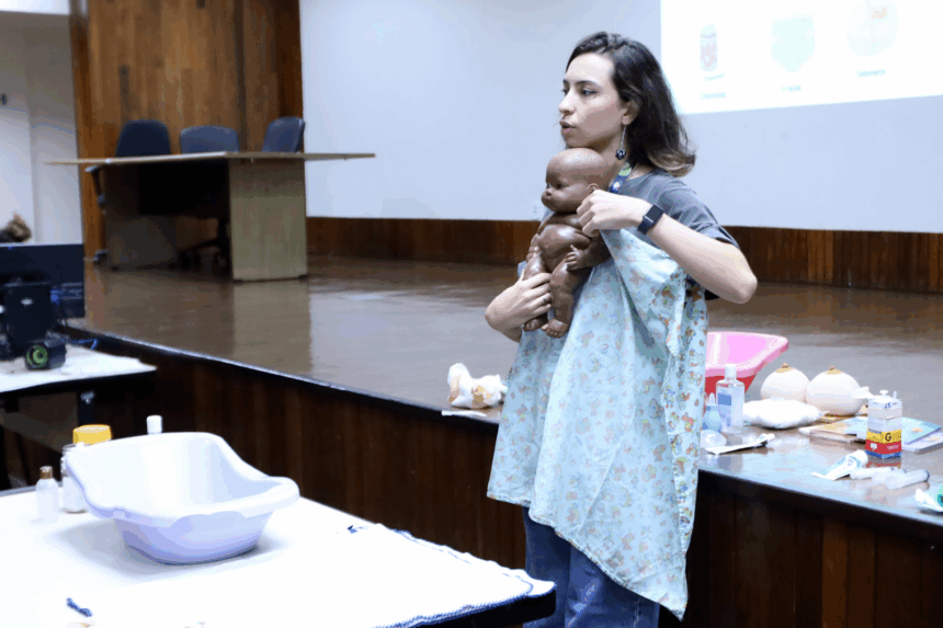 O curso faz parte do Programa de Residência Multiprofissional em Saúde da Criança e aborda temas como adaptação do bebê fora do útero, amamentação, administração de medicamentos, prevenção de infecções, cuidados com o coto umbilical, troca de fraldas, banho e os direitos da gestante e do recém-nascido.