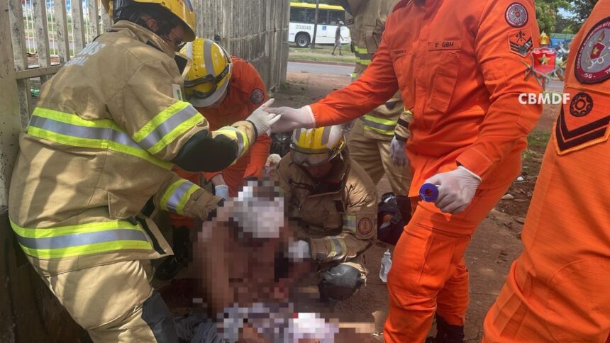 Nas imagens divulgadas pelo Corpo de Bombeiros Militar do Distrito Federal (CBMDF), mostra o atendimento à vítima. Confira a seguir: