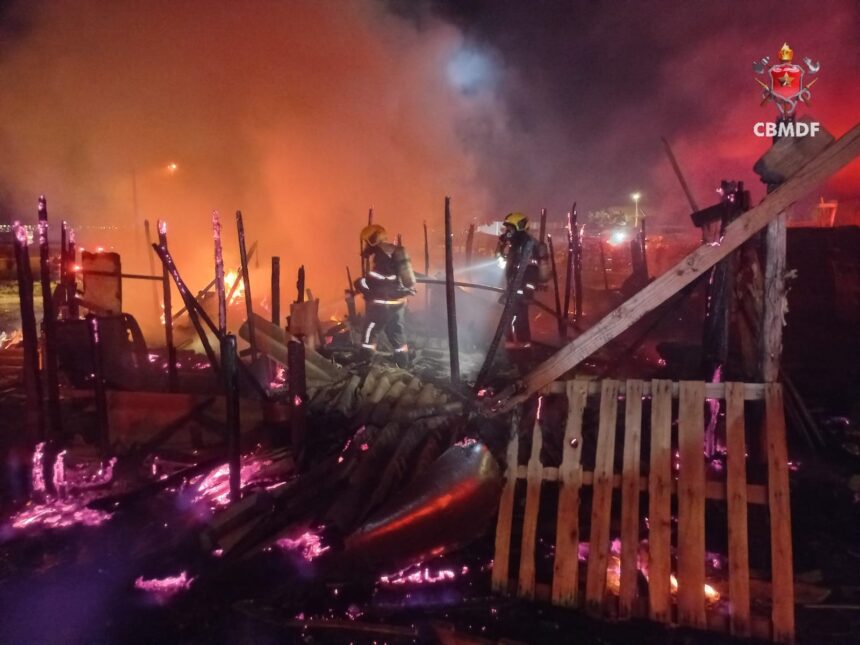No Recanto das Emas, três casas de madeira pegaram fogo na quadra 406. Segundo o Corpo de Bombeiros Militar do Distrito Federal (CBMDF), na madrugada desta quinta-feira (24), havia muita fumaça no local.