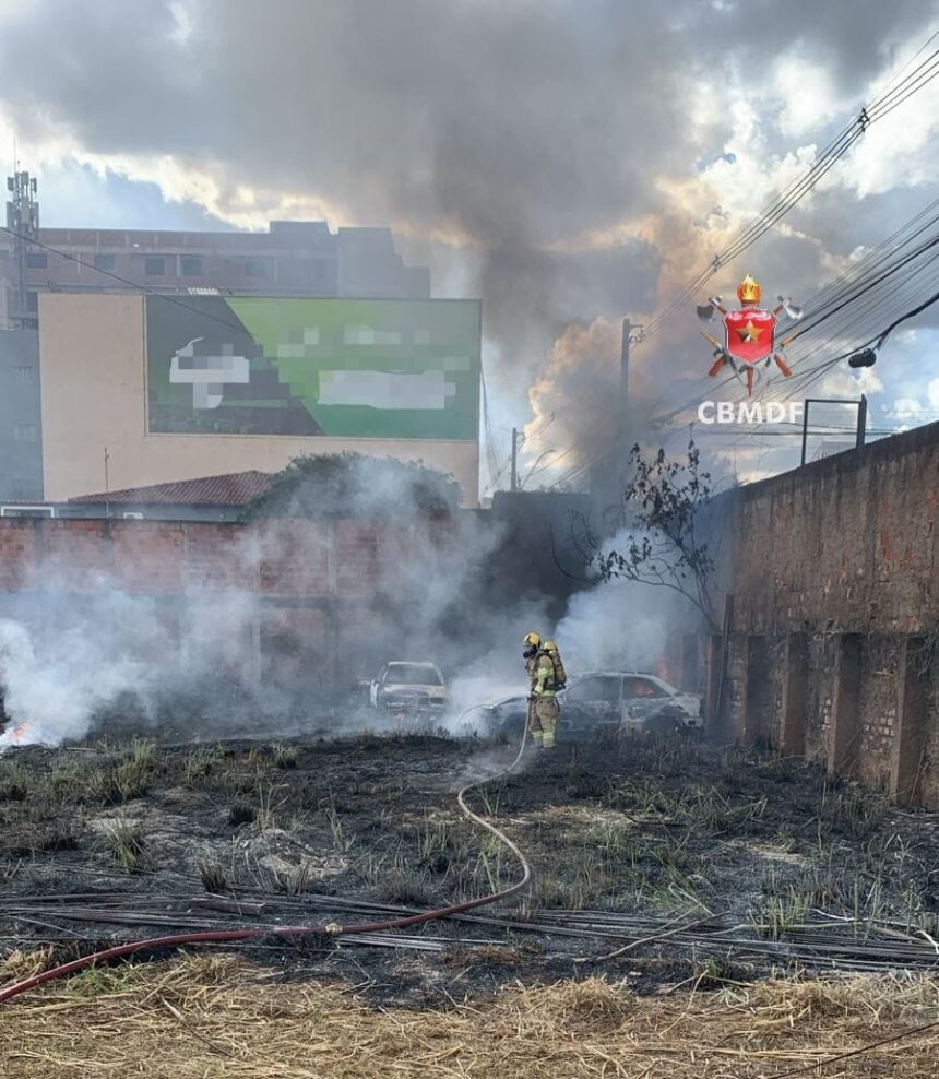 Durante um incêndio, oito carros foram danificados no setor habitacional Vicente Pires. Segundo o Corpo de Bombeiros Militar do Distrito Federal (CBMDF), o fogo começou em uma vegetação e se alastrou para um lote, onde os carros estavam. O caso ocorreu na tarde desta quinta-feira (15).