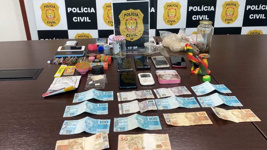 Na residência dos investigados, 15ªDP encontrou dinheiro em espécie, porções de entorpecentes, celulares, balanças de precisão, entre outros itens para a comercialização.