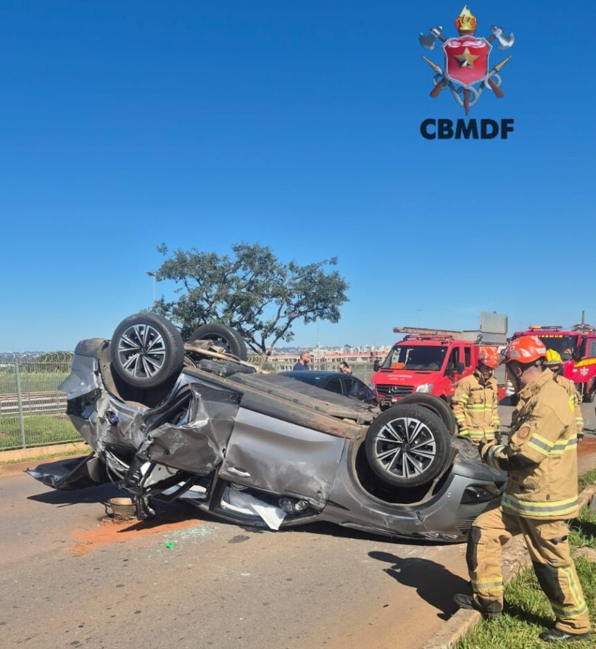 Na manhã desta segunda-feira (5), duas pessoas ficaram feridas após acidente na via que liga a Rodoviária Interestadual e o setor Policial Sul. Segundo informações preliminares, o caso envolveu dois carros. Um deles capotou durante a ocorrência.