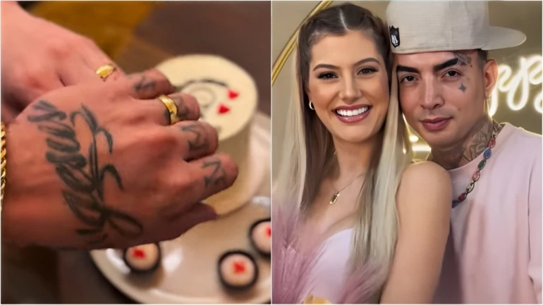 MC Guimê surpreendeu a namorada, Fernanda Stroschein, com um pedido de casamento. Neste domingo, 27, ele compartilhou com seus seguidores no Instagram registros do momento, que teve direito a bolo e muita emoção.