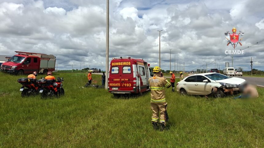 Um acidente de trânsito entre uma moto e um carro, nesta quinta-feira (5), deixou uma pessoa ferida na BR-070. A situação ocorreu ainda nas limitações da região de Ceilândia. O motociclista foi socorrido ainda consciente e orientado.