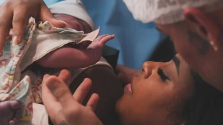 Nas imagens, ela mostra cliques inéditos do momento do nascimento do menino, e conta o nome do herdeiro: Rás.