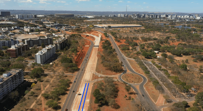Para quem segue em direção ao Eixo Monumental, serão apenas duas faixas de rolamento no trecho situado entre a Octogonal e o início da faixa reversa atualmente em operação, com início em frente à Quadra 100 do Sudoeste.