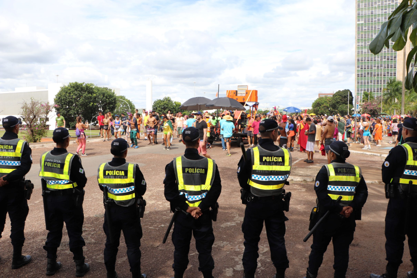 A Polícia Militar (PMDF) segue atuando nas linhas de revista para garantir a segurança dos participantes. São proibidos objetos perfurocortantes e outros itens que possam representar risco aos foliões. O trabalho conta com o apoio do Batalhão de Policiamento com Cães (BPCães), que auxilia na detecção de substâncias ilícitas.