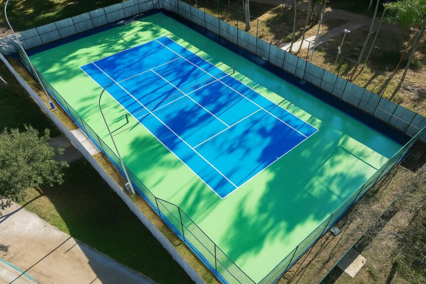 Os serviços incluem, entre outras ações, a revisão e execução de calçadas perimetrais, o reforço estrutural do alambrado — com avaliação dos portões de acesso e substituição da tela, caso necessário —, instalação de placas de sinalização e orientação de uso, a restauração do piso em concreto — com demolição e reexecução, recuperação de fissuras, lixamento, lavagem e pintura —, substituição e pintura das traves de futebol e tabelas de basquete, incluindo as redes, e a troca ou reforço da iluminação.