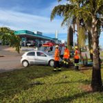 Acidente de trânsito: veículo colide em árvore e derruba placa de sinalização