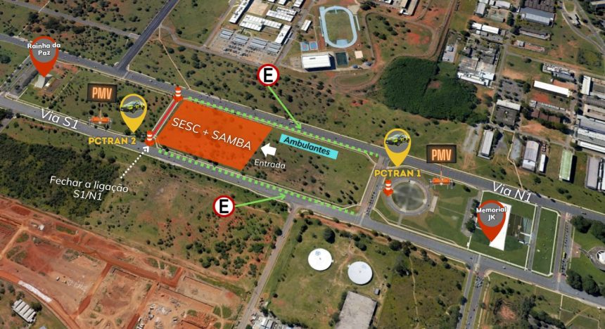 Neste sábado (15), devido ao evento Sesc+Samba, o Detran-DF fará interdições nas vias do Eixo Monumental. O evento será realizado a partir das 16h, no quadrante entre a Praça do Cruzeiro e a Catedral Militar Rainha da Paz. As interferências começam às 23h59 desta sexta (14), quando os agentes do Detran-DF farão a interdição do estacionamento da Praça do Cruzeiro.