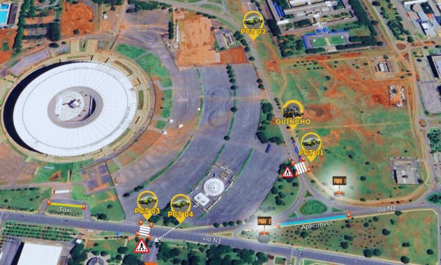Na via N1 e na via de contorno do Estádio Nacional de Brasília (ENB), os agentes implantarão sinalização para a travessia de pedestres e para impedir estacionamento irregular. Também serão utilizados painéis eletrônicos de mensagens para orientar os condutores. Na via N2, na altura da rotatória de acesso à via contorno ENB, será delimitada uma área de embarque para veículos de transporte de passageiros por aplicativo. Na entrada principal de automação da Arena BRB será sinalizada uma área para táxis.