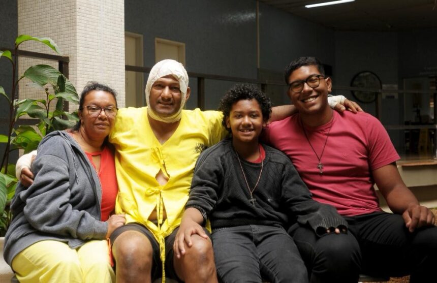 “Ei, dor, eu não te escuto mais”. Esse foi o trecho de uma das músicas entoadas pelo paciente do Hospital Regional da Asa Norte (Hran), Marcelo Felipe dos Santos, 43, ao ouvir o som do cantor Alan Cruz e banda durante uma apresentação no Jardim Central da unidade. O vigilante está internado desde o dia 10 deste mês, após sofrer um choque de energia de alta tensão.