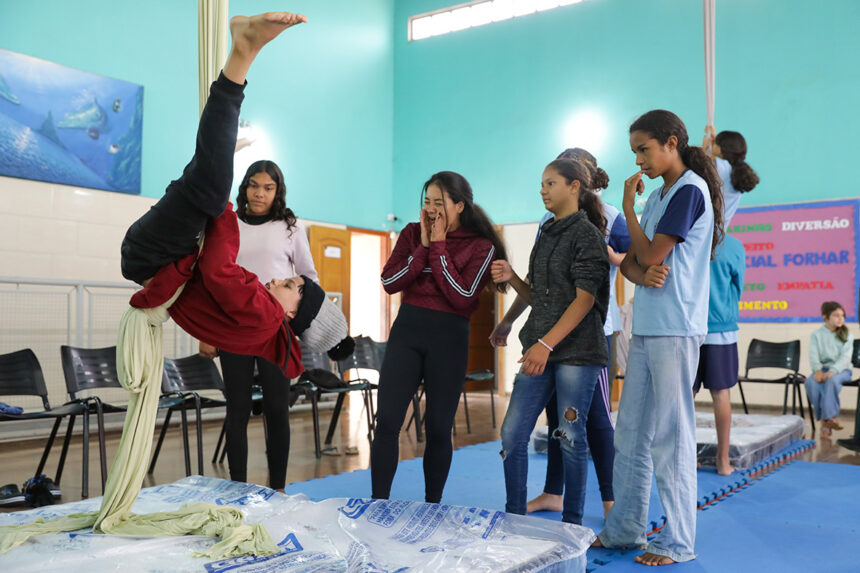 A iniciativa é da Associação Cultural, Esportiva e Turística (Ascetur) e ocorre semanalmente desde maio no Centro Social Formar, que atualmente atende cerca de 200 crianças e adolescentes sem rede familiar consolidada, com ações previstas até o fim de setembro. A atividade, que une arte, coordenação motora e expressão corporal, transforma o espaço em um picadeiro de descobertas e superações, com técnicas como acrobacia de solo e aérea, exercícios de equilíbrio, dança e criação cênica, utilizando materiais simples como bolinhas de malabares, sacolas plásticas e cabos de vassoura.