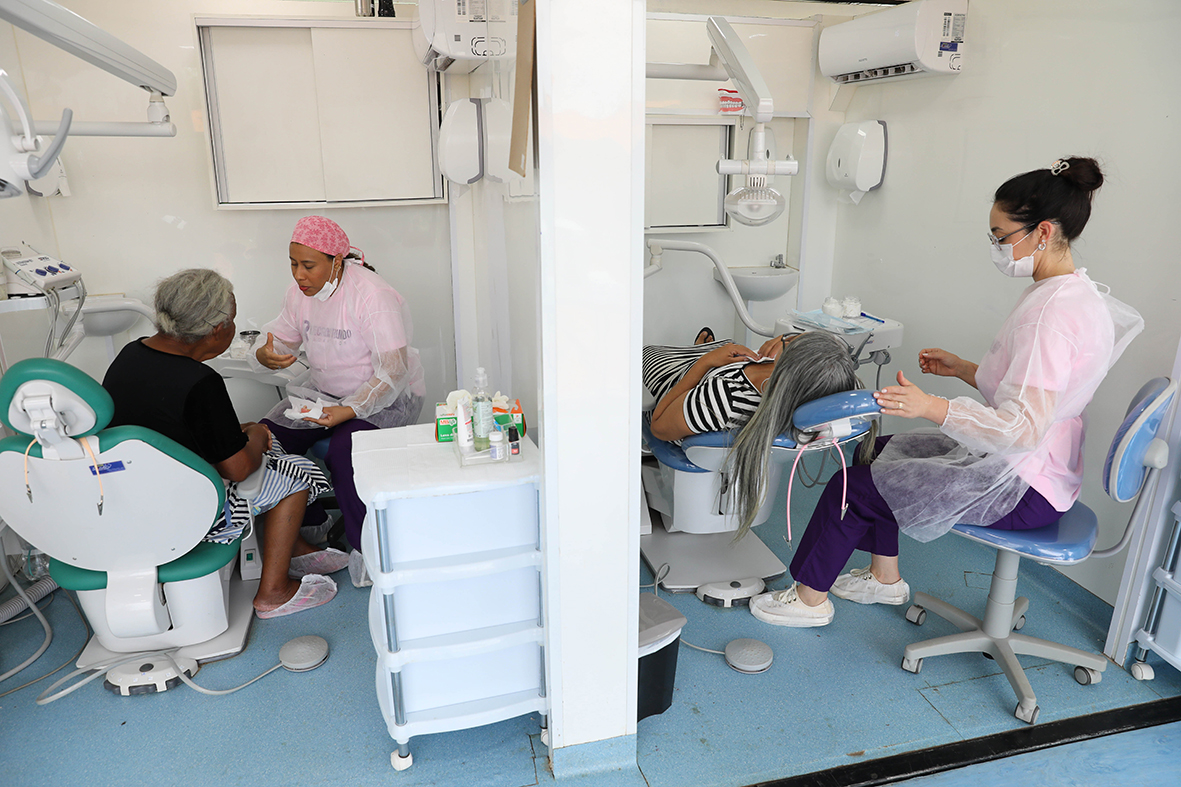Entre os serviços odontológicos ofertados estão profilaxia (limpeza), cirurgias, restaurações e próteses dentárias. “Geralmente fazemos tudo num dia só. A única coisa que não conseguimos é a extração para moldar e fazer a prótese”, comentou a dentista Ana Carolina de Aguiar.