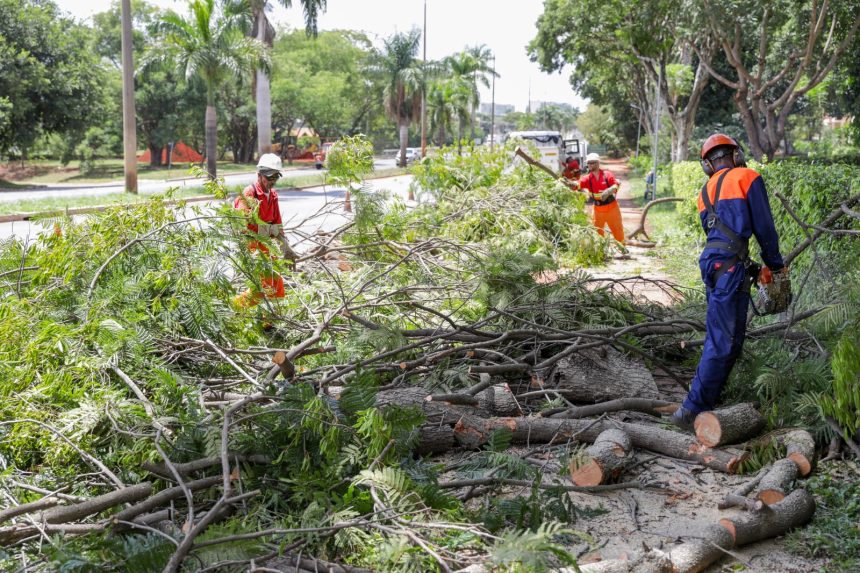 A Novacap atua em conjunto com o Corpo de Bombeiros, auxiliando na remoção de resíduos e troncos, ou finalizando o serviço em casos específicos.
