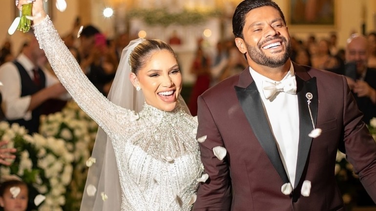 O jogador Hulk, 38, e a médica Camila Ângelo, 35, se casaram na noite de sexta-feira, 3, em Campina Grande, Paraíba.