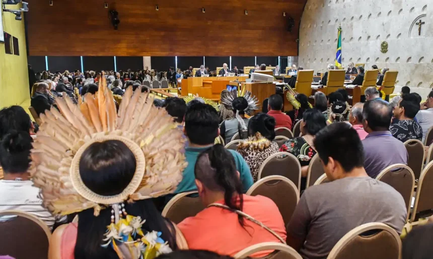 O Supremo Tribunal Federal (STF) iniciou há pouco o julgamento de quatro processos que tratam do marco temporal para demarcação de terras indígenas. Lideranças indígenas acompanham a sessão no plenário da Corte.