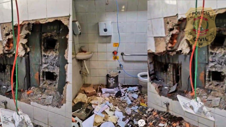 Nas imagens divulgadas pela Polícia Civil do Distrito Federal (PCDF), é possível notar o estrago generalizado que o quarteto cometeu no local. O cofre aparece totalmente arrombado.
