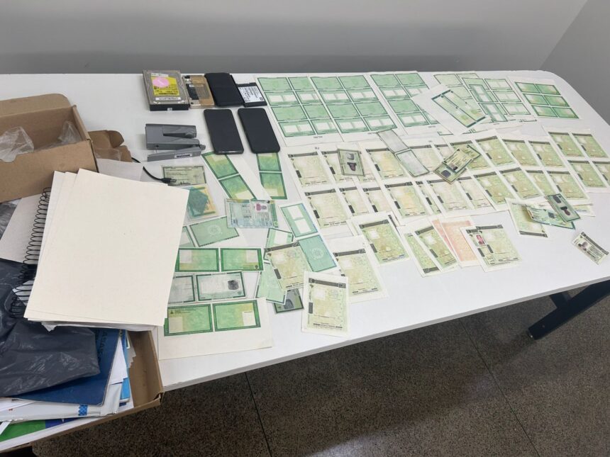 Na residência, os investigadores encontraram dezenas de cópias em branco de carteiras de habilitação e carteiras de identidade. Além disso, materiais para falsificação, como impressoras a laser, papel moeda e um dispositivo de armazenamento, foram apreendidos. Confira a seguir: