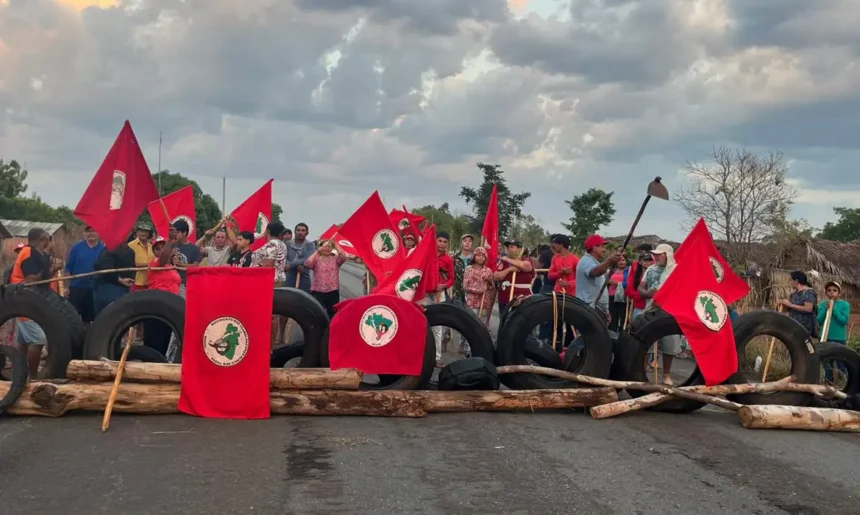 Um grupo de sem-terra bloqueou, na manhã desta segunda-feira (8), um trecho da rodovia TO-404, em Araguatins, cidade do norte do Tocantins, a cerca de 600 quilômetros da capital do estado, Palmas.