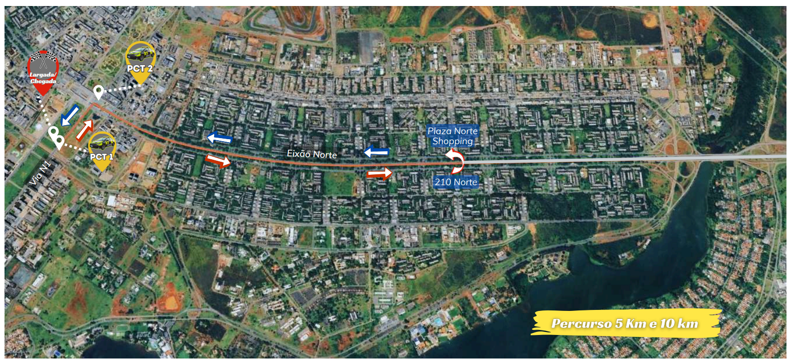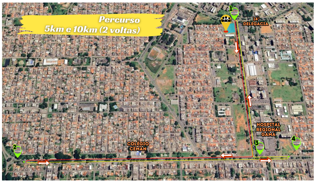 As vias de acesso à corrida ficarão totalmente fechadas a partir das 6h, sendo permitido o acesso somente aos participantes do evento e organizadores. Os corredores sairão do gramado próximo à 14ª DP em direção ao Hospital Regional do Gama e, de lá, pegam a via que passa em frente ao Colégio Ceman, fazendo o último retorno antes da rotatória da Avenida Contorno. Neste sentido, a via será totalmente fechada para o tráfego de veículos e, no sentido de volta ao ponto de partida, a via será compartilhada, ficando a faixa da esquerda para os atletas e a da direita para veículos.