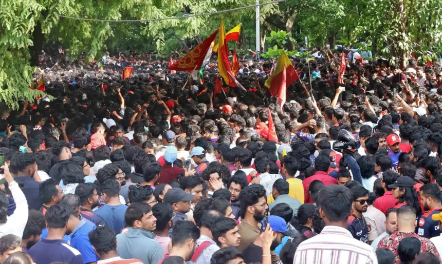 Milhares de pessoas, algumas delas agitando a bandeira vermelha da equipe, se enfileiraram nas ruas que levam ao Estádio Chinnaswamy, no coração da cidade, quando a equipe de críquete chegou ao local em um ônibus no final da tarde, mostraram os canais de televisão, com alguns escalando árvores e o muro do estádio para uma visão melhor.