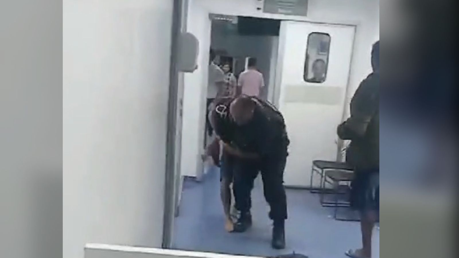 A corporação informou que teria sido após o confronto que o suspeito também furtou o celular de um dos vigilantes. Em um vídeo gravado por quem estava na unidade, mostra o exato segundo em que ocorre a troca de agressões.