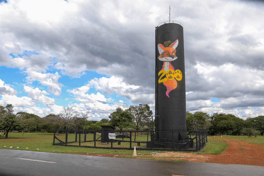 Um dos símbolos mais emblemáticos da Fundação Zoológico de Brasília está de cara nova. Visível para quem passa pela Estrada Parque Guará (DF-051), a caixa d’água foi reformada e ganhou uma ilustração que retrata a lobo-guará Atena, mascote oficial do zoo. O desenho foi assinado pelo artista brasiliense Douglas Kordyal, que pretende completar a arte com uma homenagem à girafa Yaza, falecida em março deste ano, aos 21 anos.